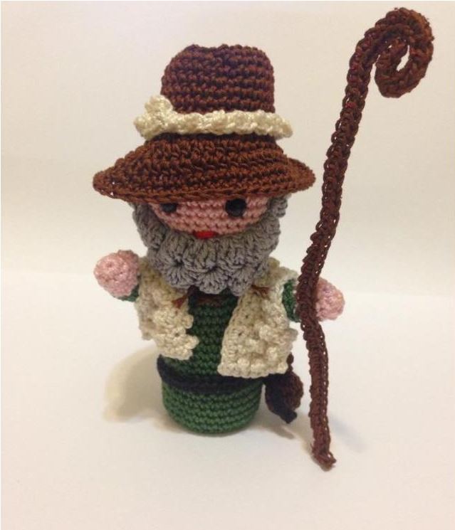 Per realizzare il bastone lavorare a punto basso attorno ad uno scovolino per pipa o ad un pezzo di fil di ferro e arrotolarne la punta.