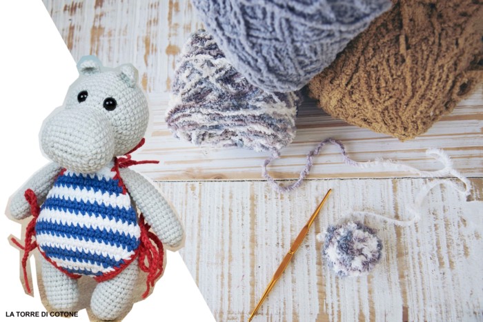 L’ippopotamo col costume a righe blu, bianche e rosse è un simpatico schema amigurumi che diventerà un fedele compagno di viaggio, soprattutto durante le vacanze estive! Il costume può essere tolto completamente dall’amigurumi. Immaginate la gioia dei vostri bambini, mentre passeggiano in spiaggia con questo simpatico peluche?