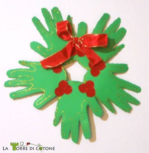 Il fatto di poter esibire questa ghirlanda, potete ben capirlo, è per me una grandissima soddisfazione! Ancor più per il fatto che è stata creata sagomando dei cartoncini con la forma delle sue manine, e dallo scorso anno sono cresciute un bel po’…